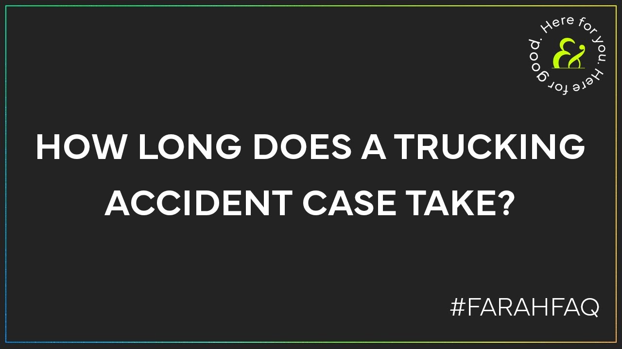 How long does a trucking accident lawsuit take? Hi I’m Rick Staggard. I’m a litigation attorney with Farah and Farah. Truck accident victims are some of our most severely injured clients. So the mere nature of the severity of their injuries can make the lawsuit take a while because they’re healing up and they’re getting medical treatment and hopefully getting better but also the trucking companies hire really good and really experienced attorneys and so when we’re trying to get information from the the trucking company that they’re required to keep under federal law sometimes the companies don’t want to give it to us and we’ve got to go to court and get a judge to order them to give it to us and there are many other delays that can happen during the lawsuit process so, it varies. The lawsuit could take a short period of time but it could also take quite a long period of time. If you’ve been injured by a truck please call Farah and Farah. We’re here to help.