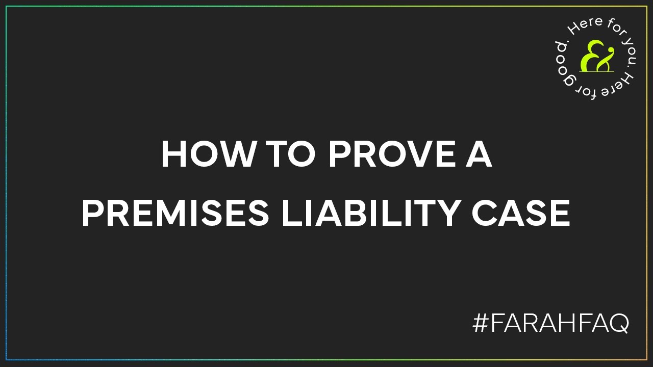 How to prove a premise liability case? Hi I’m Kahlil Farah. I’m an attorney at Farah and Farah and a premise liability case is sometimes difficult to prove because of the circumstances surrounding the incident itself. So, for example in a slip and fall case someone may have slipped in water but proving how that water got there can sometimes be a challenge.
