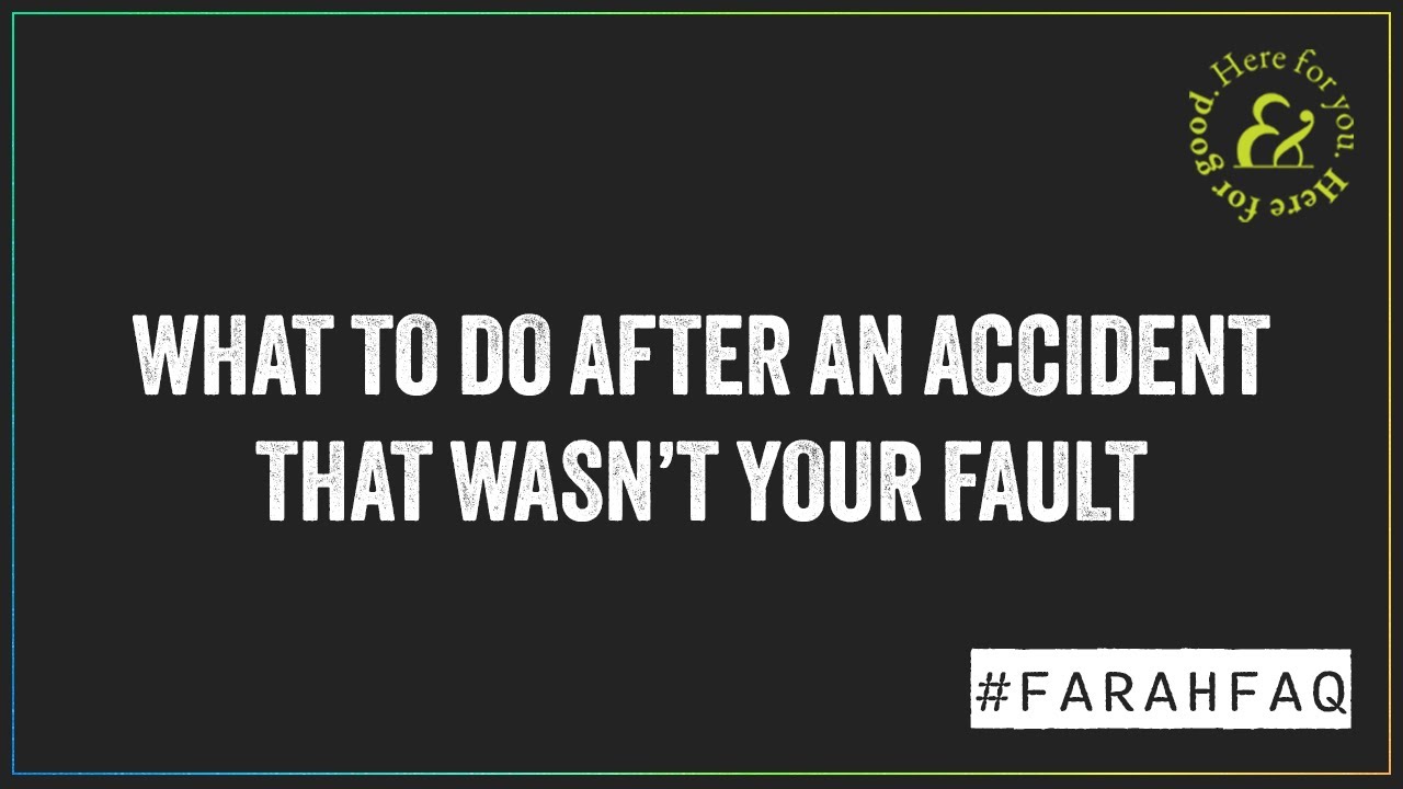 What do you do after a car accident that isn’t your fault? My name is Khalil Farah. I’m an attorney at Farah & Farah and the most important thing you can do at the scene of the crash is to document as much as you can. So, take photographs of the two vehicles but make sure your photographs not only show the damage but show the position of the two vehicles at the scene. It’s also important to get the names and addresses or phone numbers of any witnesses that were there at the scene and as soon as it’s safe to do so call Farah & Farah so we can begin our own investigation, as well.